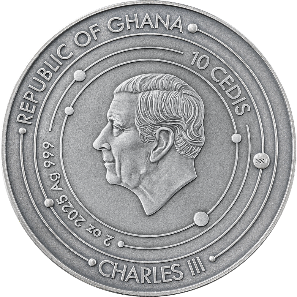 2025 Ghana 2oz Antique Color Gilding Uranus .999 Silver Coin