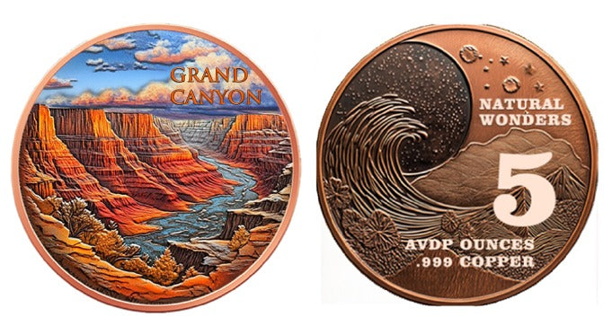 Expertly crafted with stunning detail, the 2025 Grand Canyon Colorized 5oz ADVP Copper in Capsule is the second in the coveted Natural Wonders series. Limited to a mintage of 5,000, this is a must-have for any collector. With a minimum order of 100 pieces and a lead time of only 6 weeks, secure yours today.