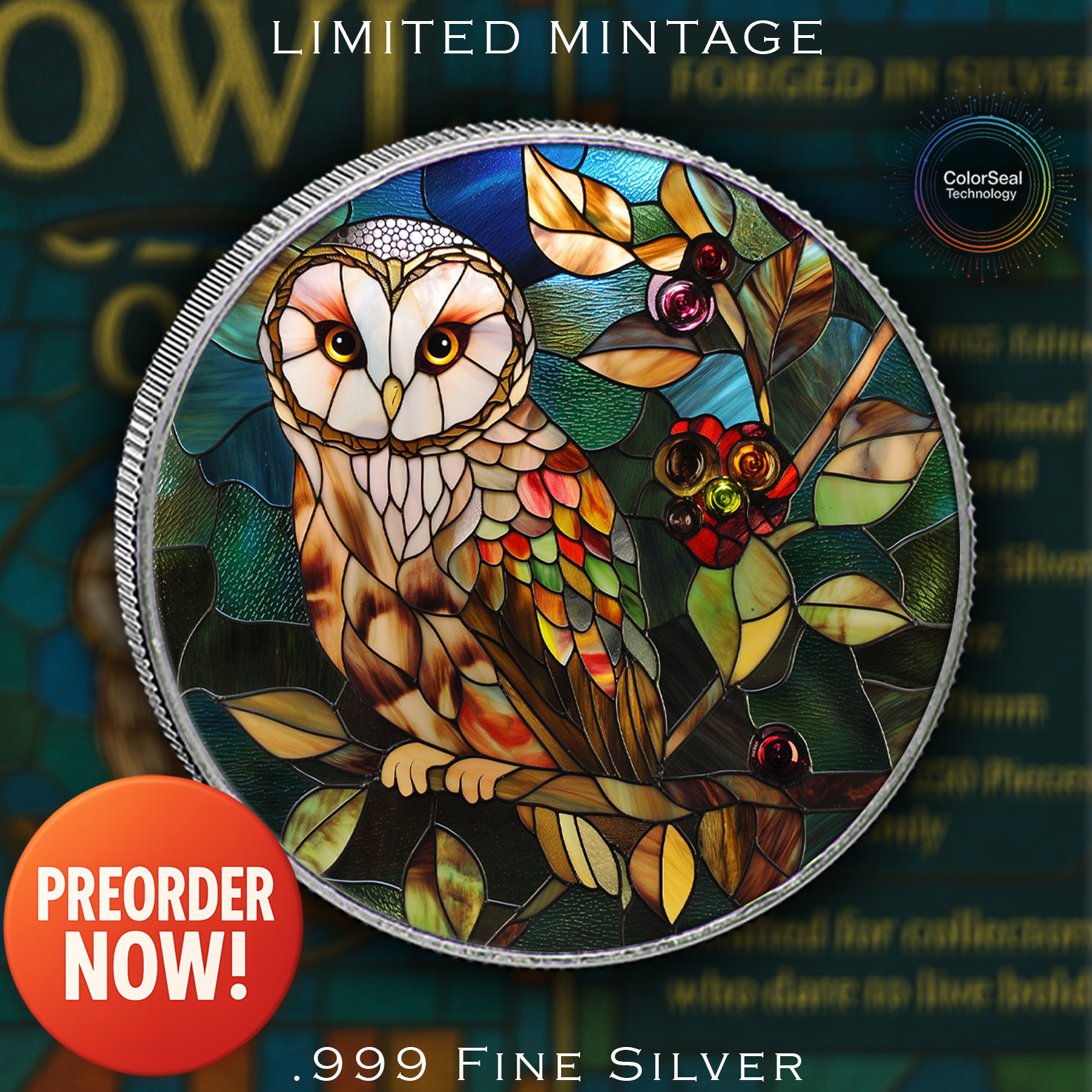 2025 Silver Eagle Mosaic Owl “Eyes of the Night” 1oz .999 Silver Coin