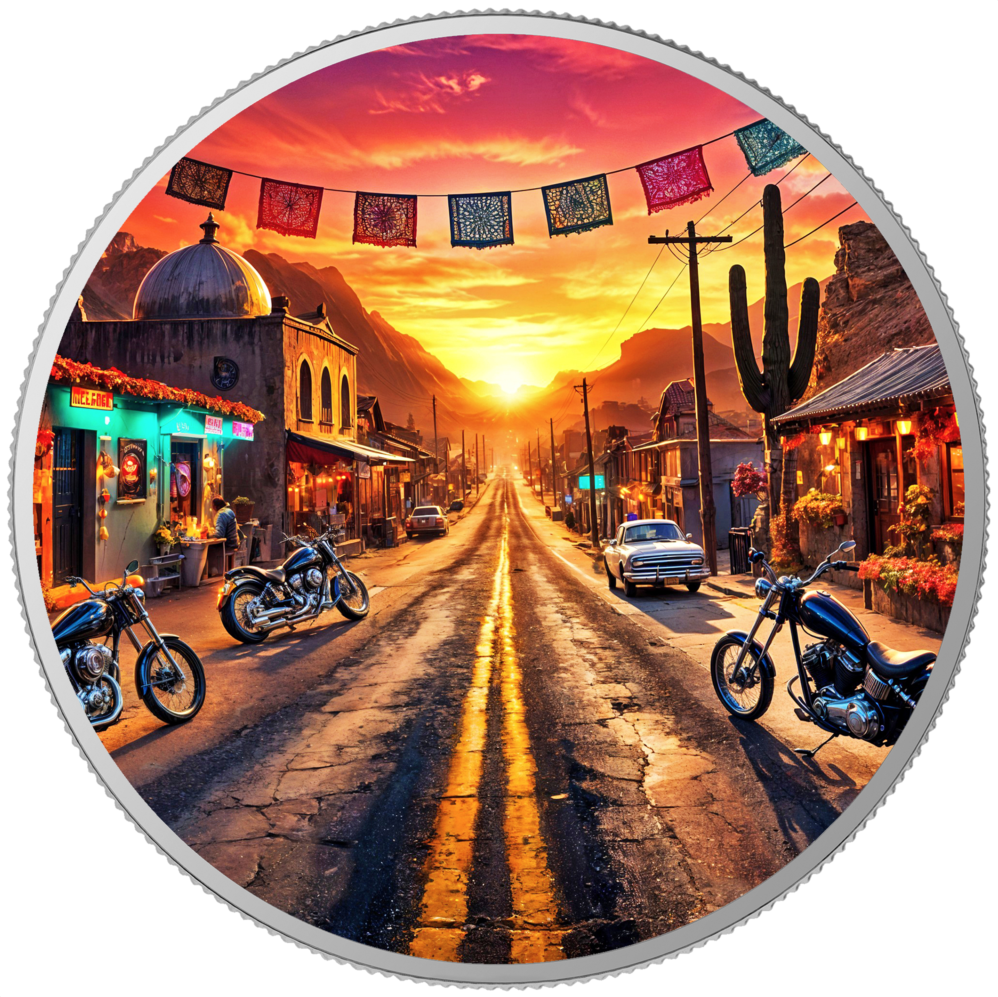 Limited edition 2024 Mexico Libertad Dia de los Muertos Biker 1oz .999 Silver Coin. Only 250 pieces available. Celebrate with this exclusive coin featuring a vibrant design and high purity silver. A must-have for any collector or investor.