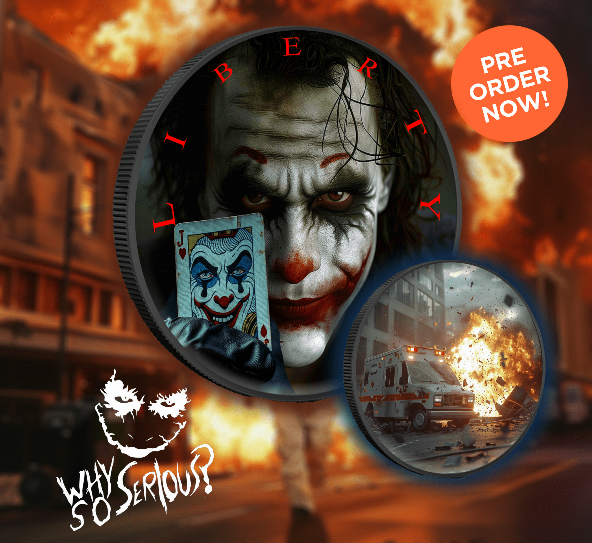 Map Price of Own a piece of iconic pop culture with our 2024 Silver Eagle coin featuring the infamous "The Joker" character. Crafted from .999 silver, this 1oz coin is a valuable addition to any collection. Its unique design and limited edition status make it a must-have for any fan or collector. Get yours today and join the madness!