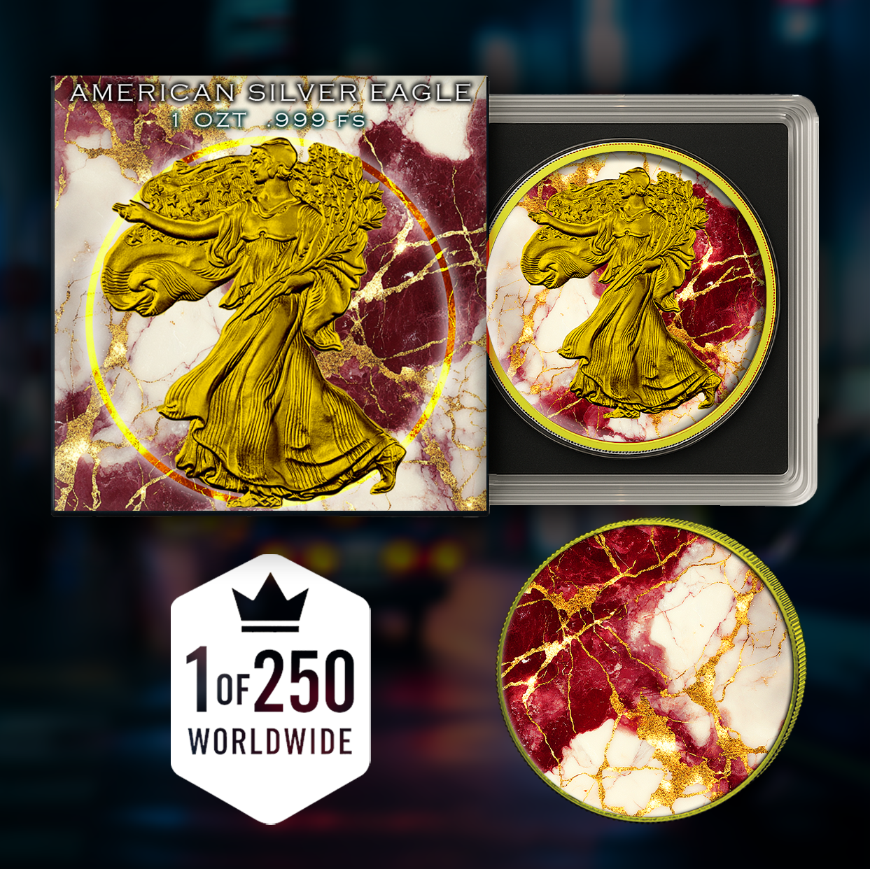 2024 Silver Eagle Marble w/ Gold Gild Edition 1oz .999 Silver Coin