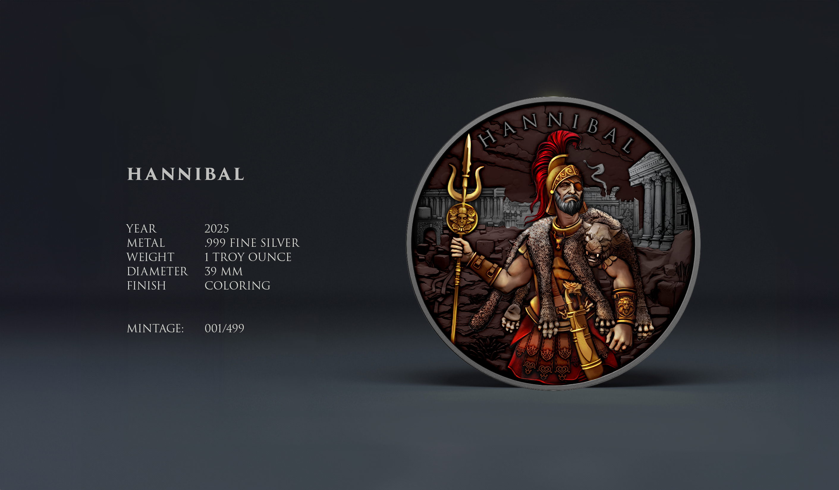 2025 Legendary Warriors Hannibal 1oz .999 Silver Colorized Round