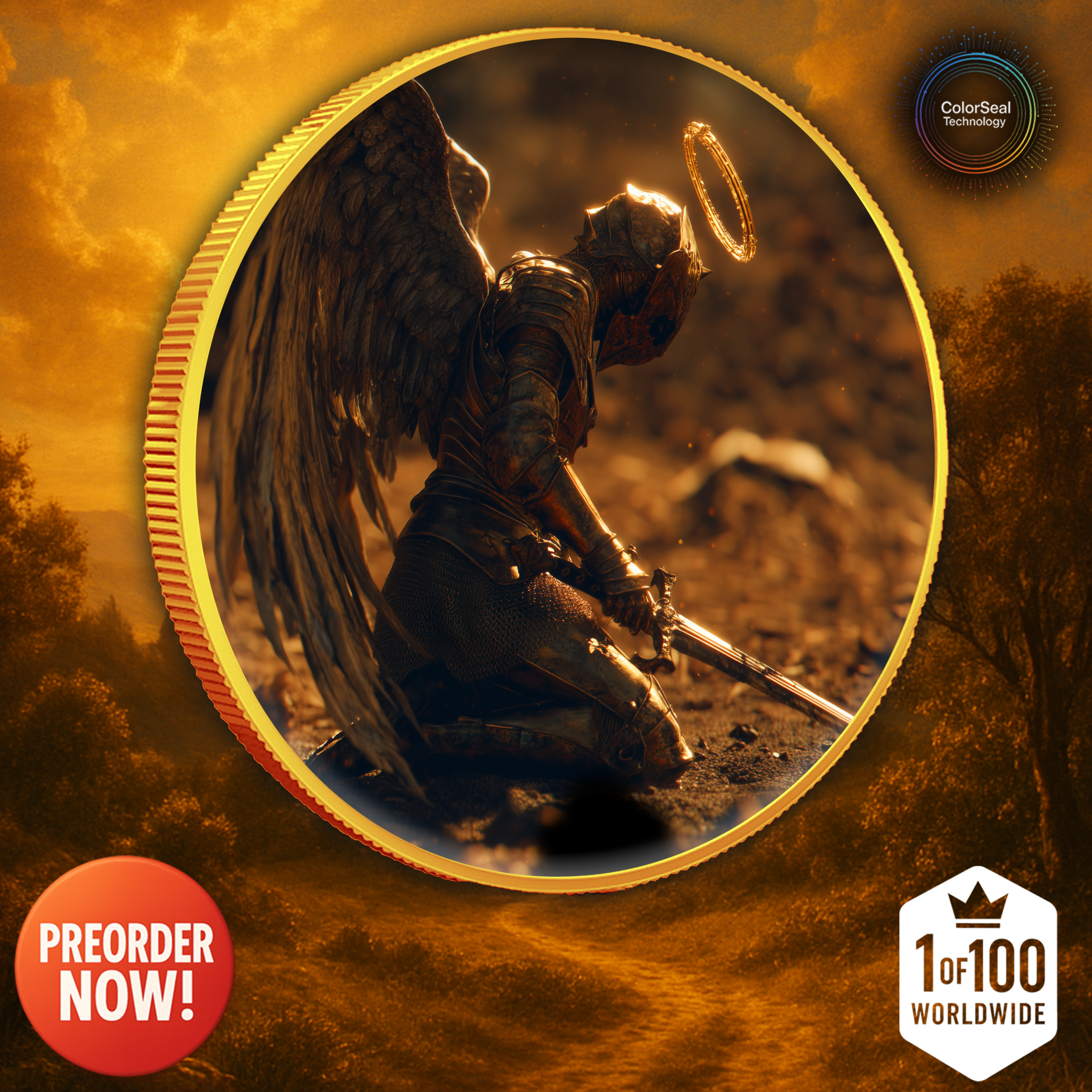 This exclusive 2025 Silver Eagle features a mesmerizing portrait of a Fallen Angel enhanced with premium gold gilding.