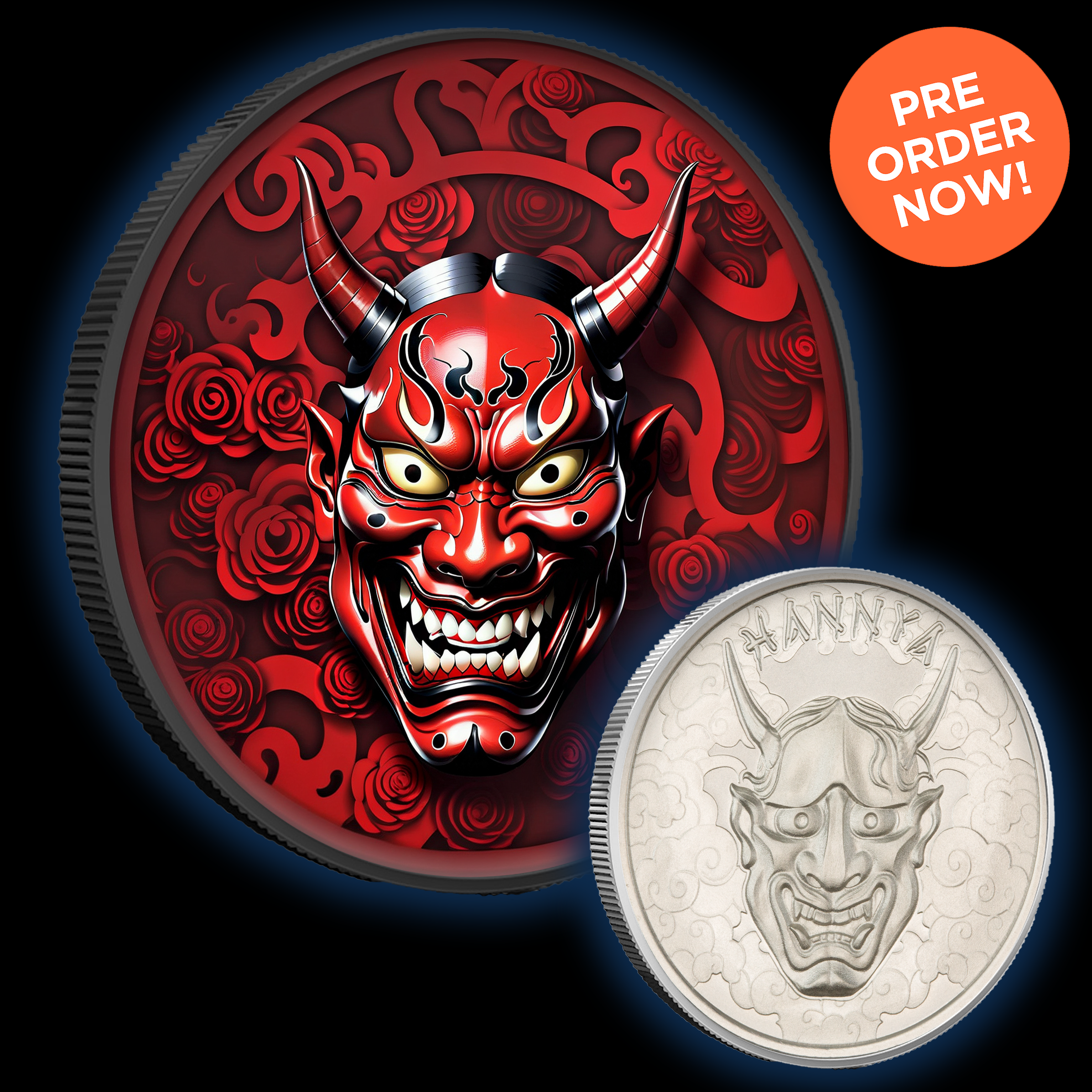 Limited edition Intaglio 1oz .999 Silver Medal "Hannya" features stunning detail and a beautiful replica of the Hannya demon from Japanese folklore. With only 250 available, own a piece of captivating artistry and investment opportunity.