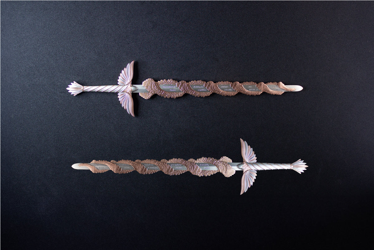 2024 The Sword of St. Michael 2.5 oz Silver (Ag 999) Bar Pink Gold Gilding