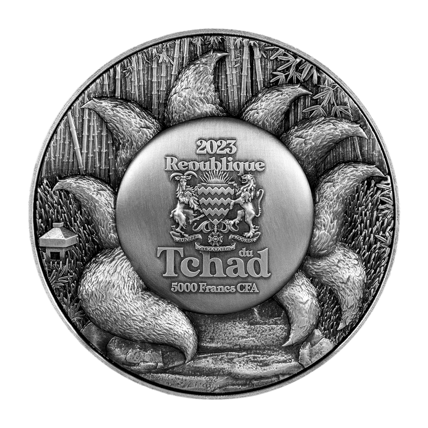 Through the use of a new minting technique called “Bi-Metal Reverse”, it achieves a remarkable weight and 60mm diameter size – making it double the size of a regular 1 oz collectible. By combining 1 oz of 999 pure silver as a base with a top layer of 4.5 oz of copper, the result is a super ultra-high relief that brings out every detail to maximum effect, then finished with antiqued silver and vibrant colorings applied to the Nine Tailed fox in vibrant colors. This is a limited edition of 688 pieces only. Each piece is packaged and delivered with a Certificate verifying its edition number and authenticity.