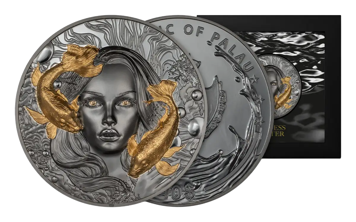 Experience the captivating legend of Poseidon and Amphitrite with the 2024 Palau 2oz Silver $10 Goddess of Water Black Proof coin. Struck in Ultra High Relief from .9999 fine silver, this 2-ounce coin features exquisite partial gilding that highlights its rich nautical design. Minted by B. H. Mayer’s Kunstprägeanstalt in Munich and graded NGC PF70 First Release, it beautifully captures the myth of the sea god’s pursuit of the elusive nymph Amphitrite. A stunning collector’s piece, this coin combines artistry and mythology in a timeless treasure.