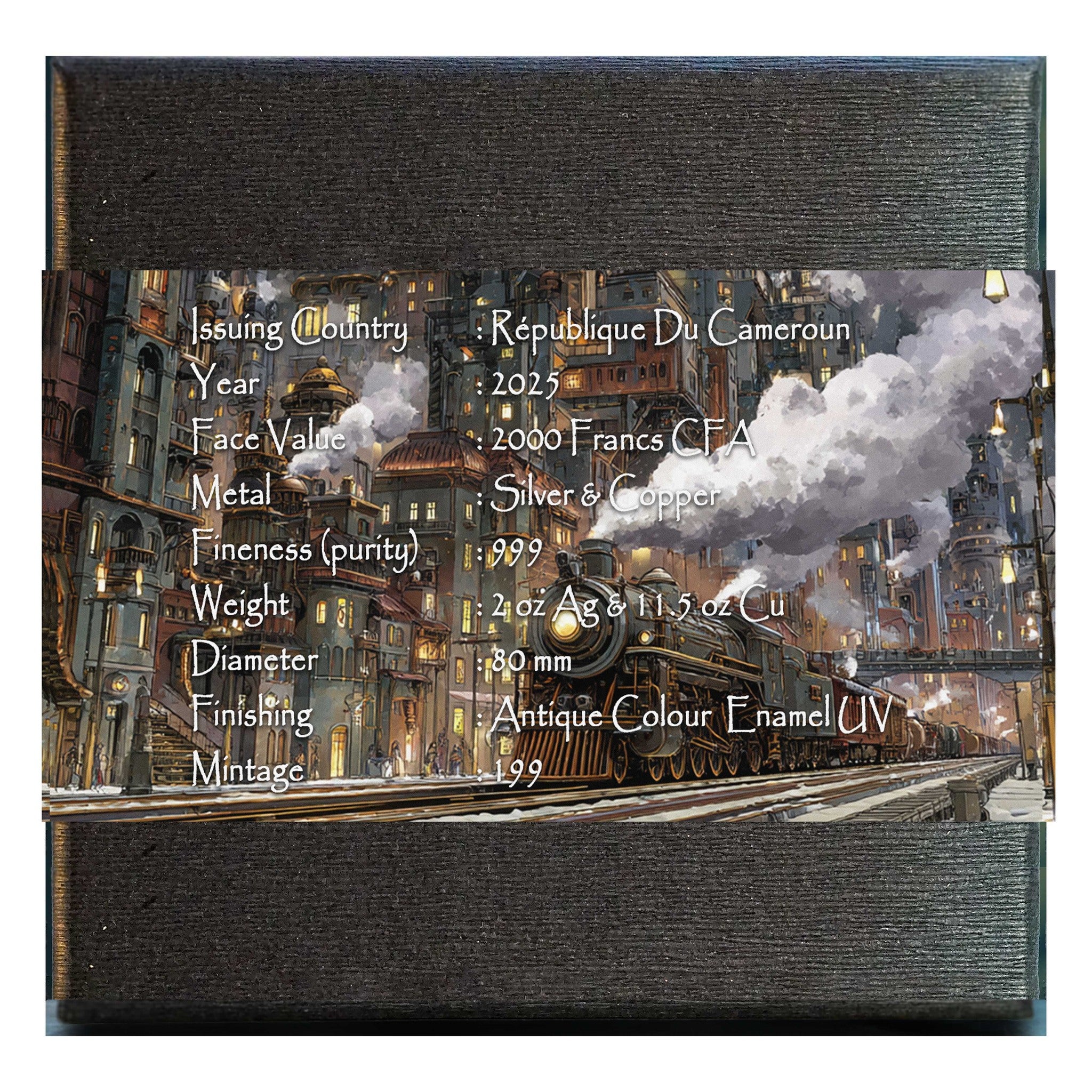 Experience the remarkable 2025 Cameroon Antique Steam Train coin, a limited edition of only 199 pieces.