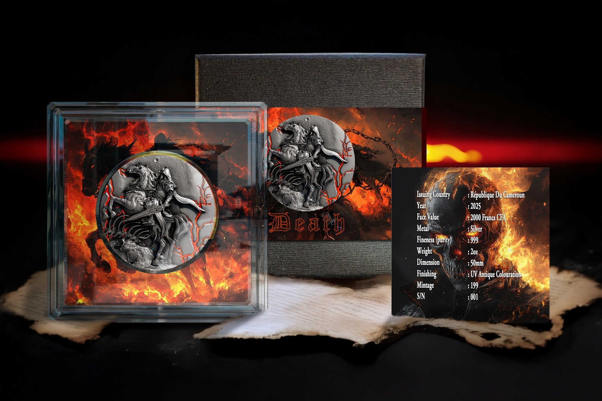 2025 Cameroon Four Horsemen Death 2 oz Antique Silver Coin