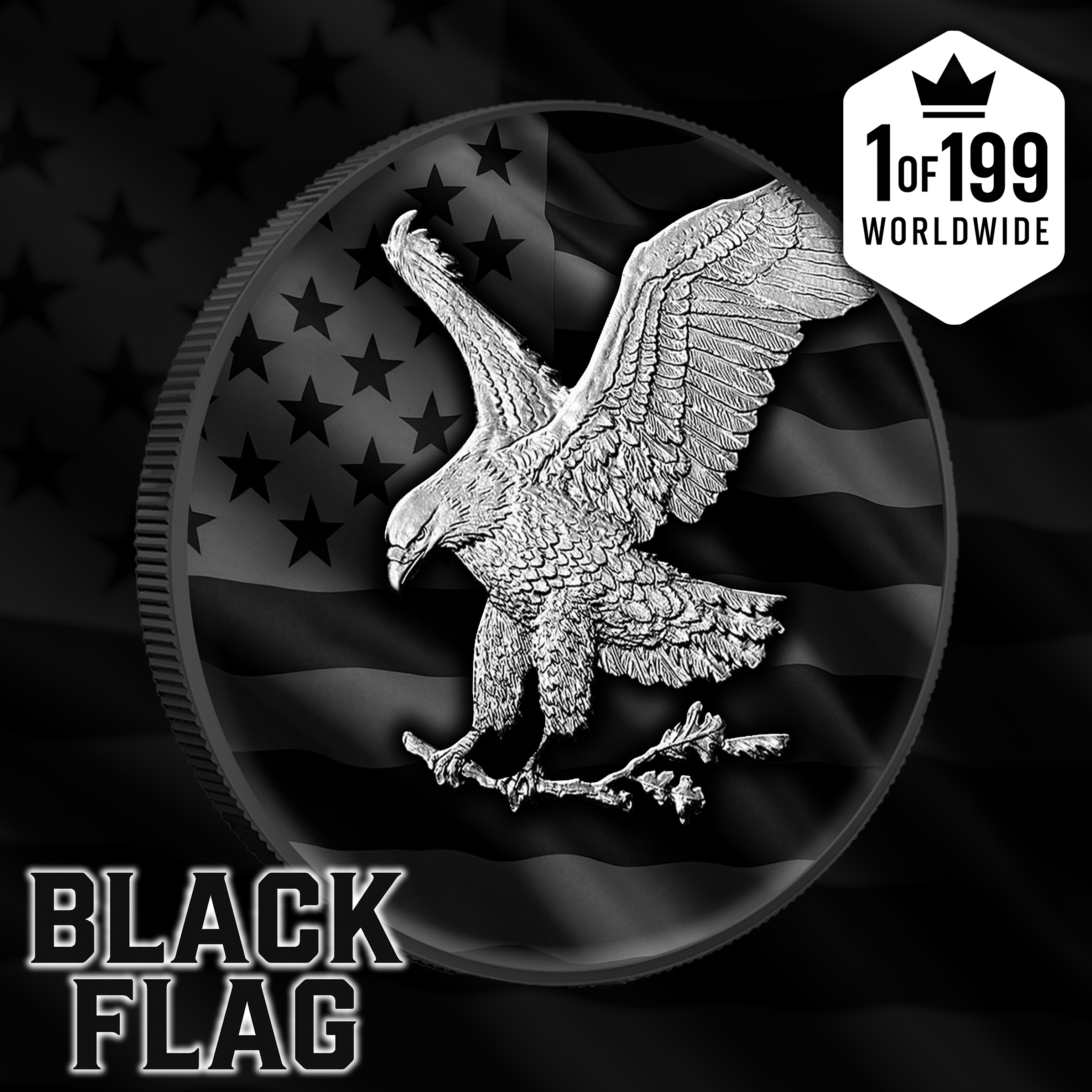 Limited to just 199 pieces, the 2025 Silver Eagle "Black Flag Edition" No Quarter 1oz Silver Coin boldly features the Black Flag symbol, representing a fierce stance of no surrender.