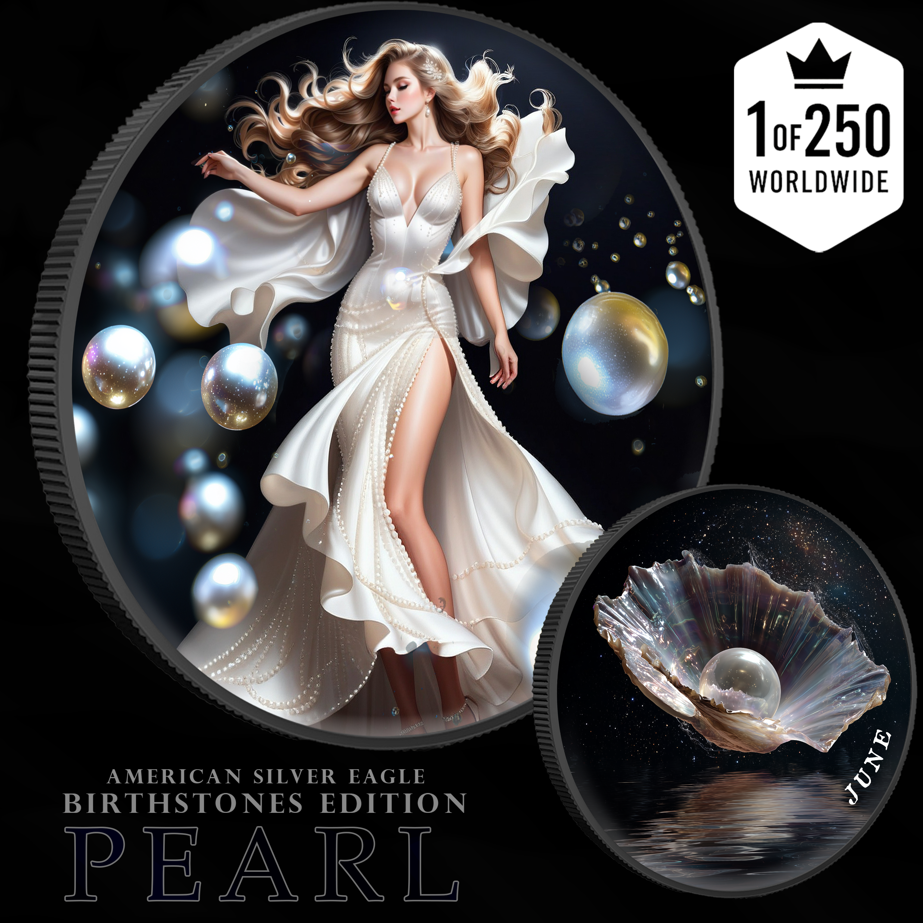 Celebrate the final chapter of our exclusive 12-month birthstone series with the 2025 Silver Eagle Pearl Birth Month Coin.