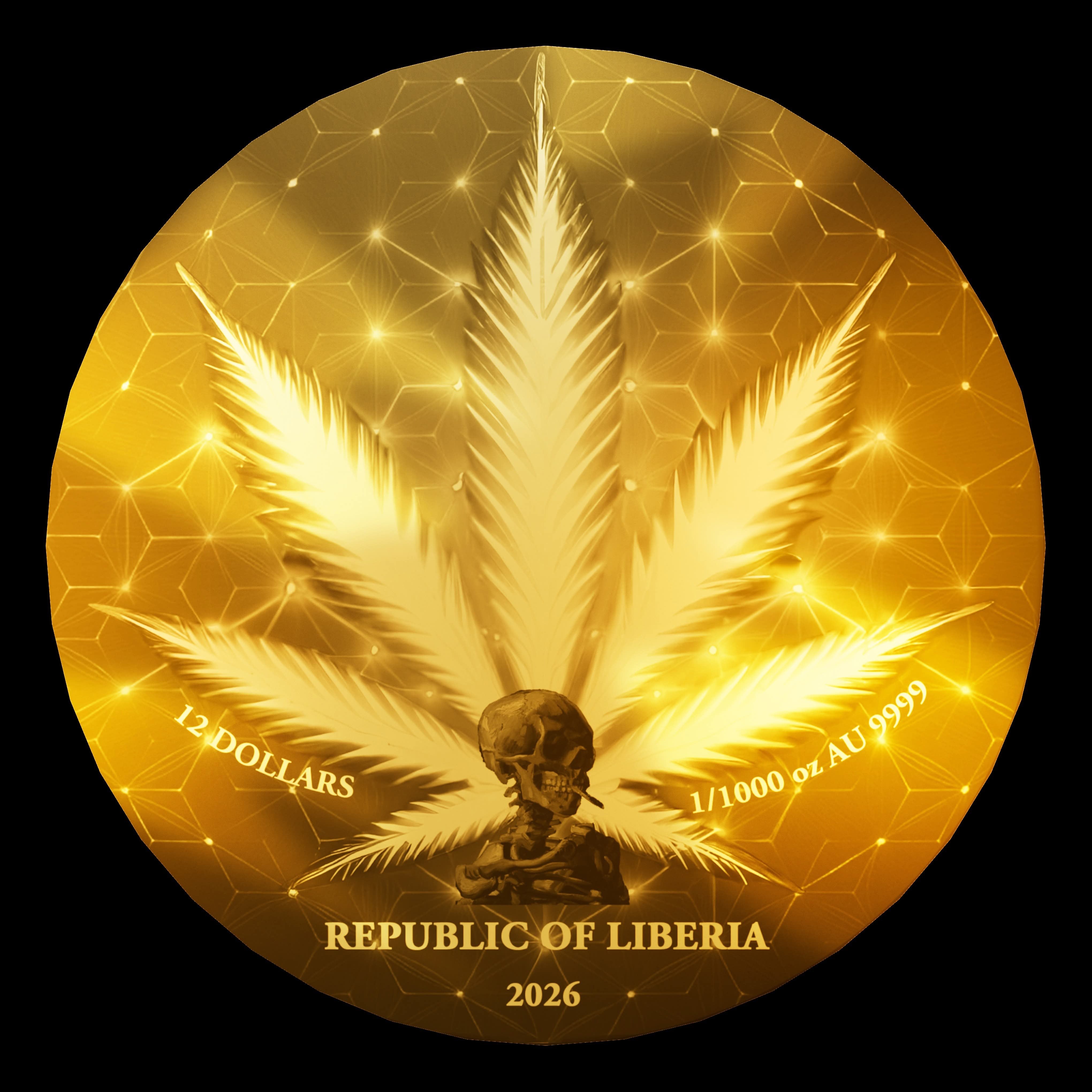 2026 Liberia Cannabis 1/1000 oz .9999 Gold Coin in Card
