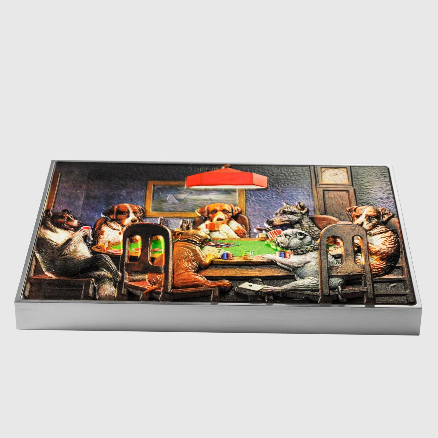 On a canvas of 165 x 125mm, a new minting technique called “Tri-Metal” was applied to give this piece its remarkable weight while keeping its proportions true to the actual painting. This is made possible by combining 750g of Zinc as a center layer and 120g of copper as a base with a top layer of 2.5 oz of 999 fine Silver, resulting in a high relief. This is a limited edition of 399 pieces only. Each piece is packaged and delivered with a Certificate verifying its edition number and authenticity.