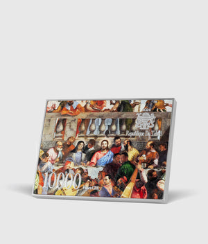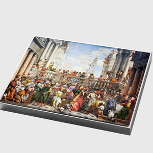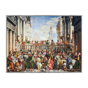 At its core, The Wedding at Cana illustrates a moment from the Gospel of John, where Jesus, attending a wedding banquet in Cana, performs his first miracle at the behest of his mother, Mary. Yet rather than presenting a humble biblical scene, Veronese elevates the episode to epic proportions. The composition is grand and symmetrical, with a central table stretching across the horizontal axis, echoing Leonardo da Vinci’s The Last Supper, yet populated with far more figures. Jesus, seated quietly at the centre, is nearly dwarfed by the surrounding activity—a deliberate choice that emphasizes the hidden nature of the miracle rather than the spectacle of it.