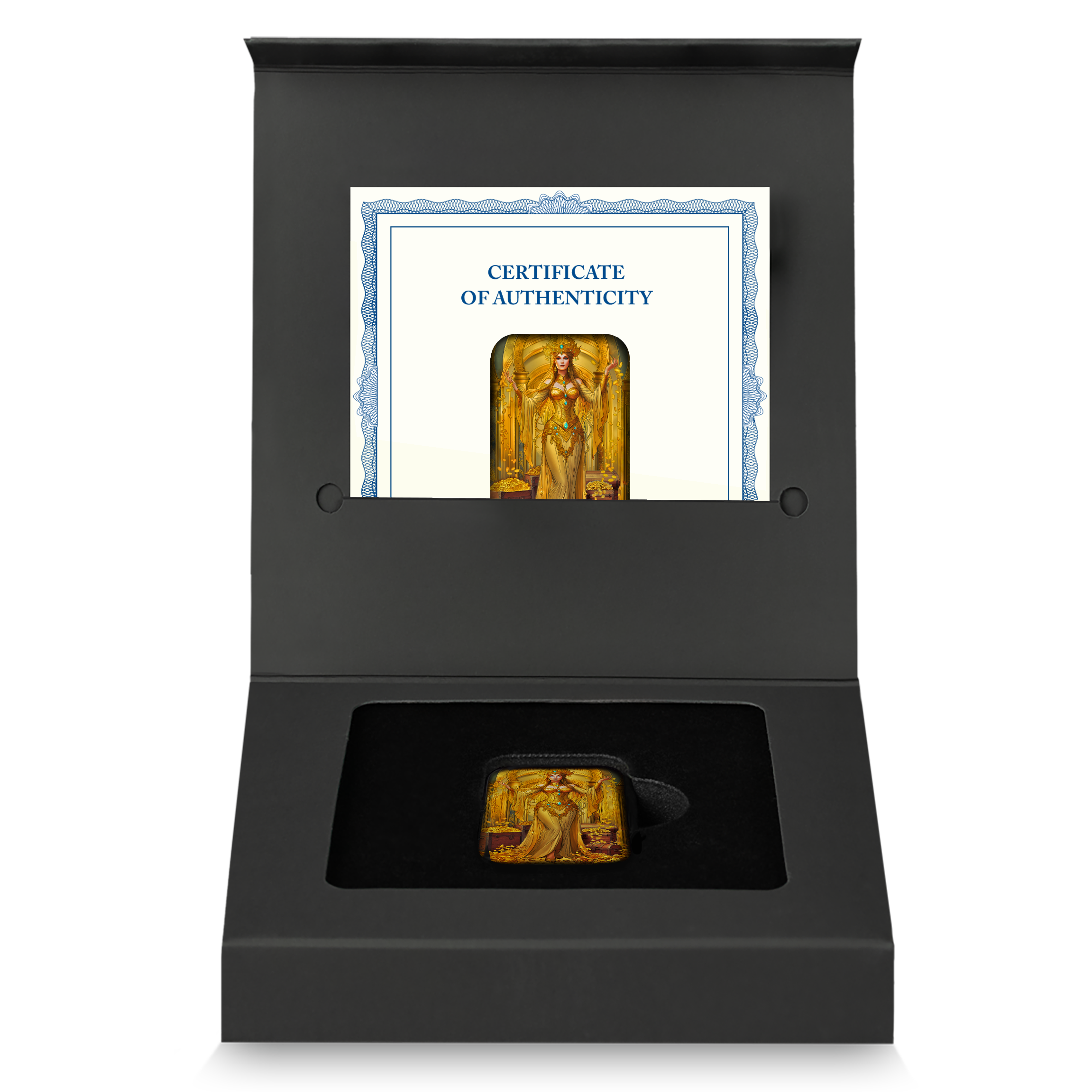 It is a 999.9-ounce cast bar with an antiqued finish and full colour on the main face. Each issue will have a specific color and design for each deadly sin, so that each colour will also identify a deadly sin. Each bullion is engraved with an individual serial number and the bull, Asturmint's identifying symbol, which appears on each of our coins