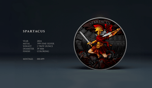 Spartacus 1 Troy Ounce .999 Fine Silver Round. This exquisite piece is a