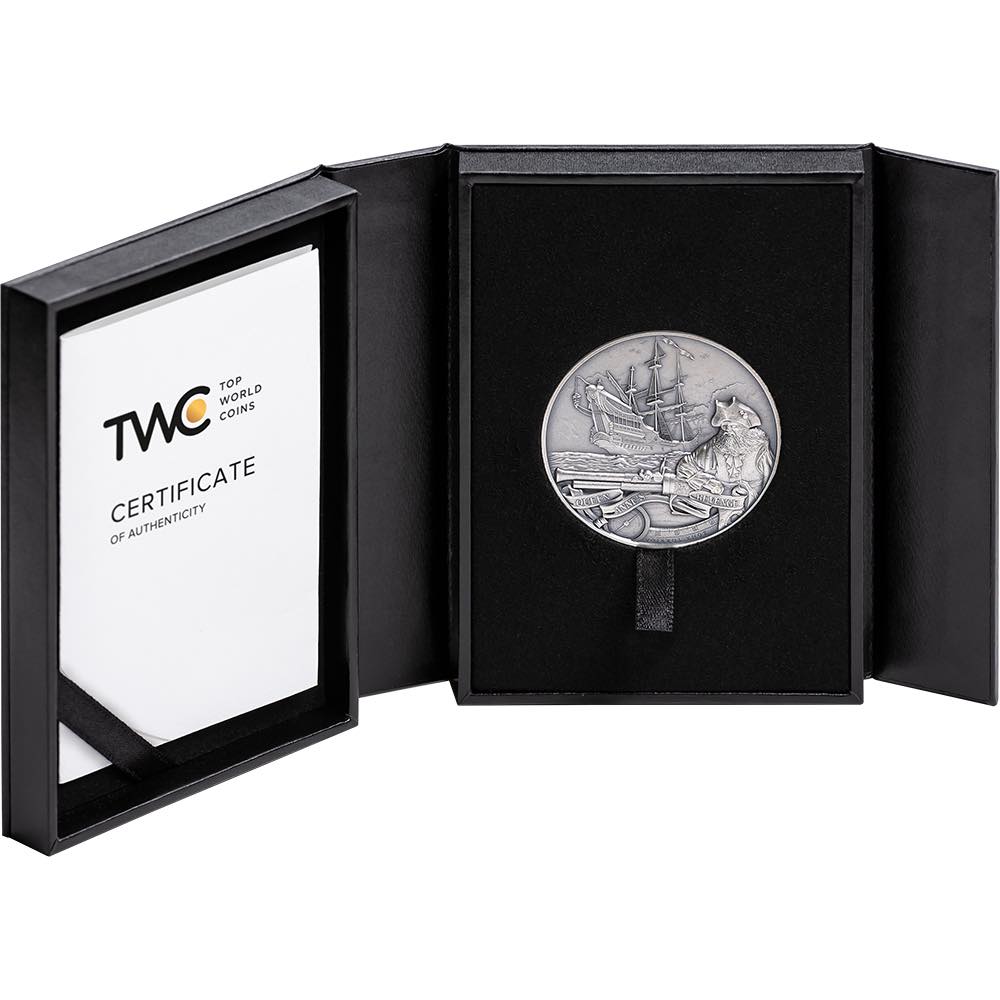 2023 Barbados Captain's of Fortune Queen Anne's Revenge 2 oz Silver Coin with Decorative Book Case and COA