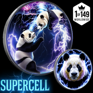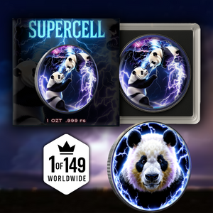 Experience the beauty and power of nature with the 2023 China Panda "Supercell" Storm 1oz .999 Silver Colorized Coin.