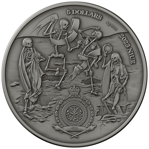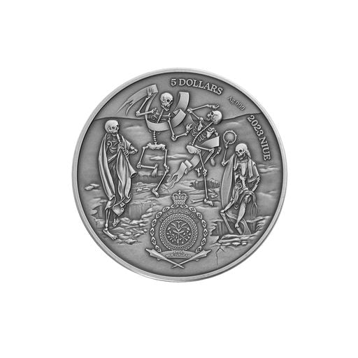 2023 Niue Human Tragedies - Black Death 2 oz Silver Coin Color and Antique