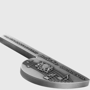 A new minting technique called “Bi-Metal Max” was applied to give this piece its remarkable weight and size in a dimension of 42x120mm. This is made possible by combining 5.6 oz of copper as a base with a top layer of 1 oz of 999 fine Silver and it is shaped to finish of the highest precision. This is a limited edition of 688 pieces only. The artistic display of this piece shows Bach as his work and captures the essence of what the artist is best known for. Each piece is packaged and delivered with a Certificate verifying its edition number and authenticity.