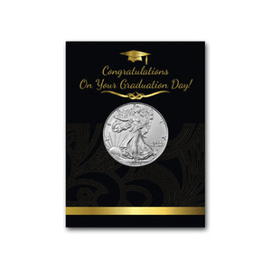 It’s classic, it’s massive, and it’s collectible! There’s no better way to celebrate life’s greatest moments than with America’s favorite Silver Dollar. Whether they’re leaving preschool or receiving their doctorate, graduations are always big events to those receiving their diploma, this festive card forever immortalizes that moment by proudly proclaiming “Congratulations.” Encased inside is a permanent reminder of just that day—a 2024 American Silver Eagle in Brilliant Uncirculated condition. The year ahead will be filled with graduations, and these cards are perfect for friends, family, or business associates. Why not shop for everyone with one convenient purchase today? When you want to send your best, get a little help from Lady Liberty!