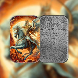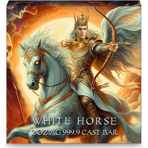 Carpathian Mint presents its first cast bar of the series Four Horsemen of the Apocalypse - White Horse. It is a 999,9 silver bar of 2 oz with an antique finish and full colour on the main face.