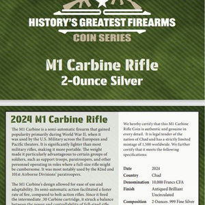 2024 Chad History's Greatest Firearms M1 Carbine Rifle 2 oz Silver Coin