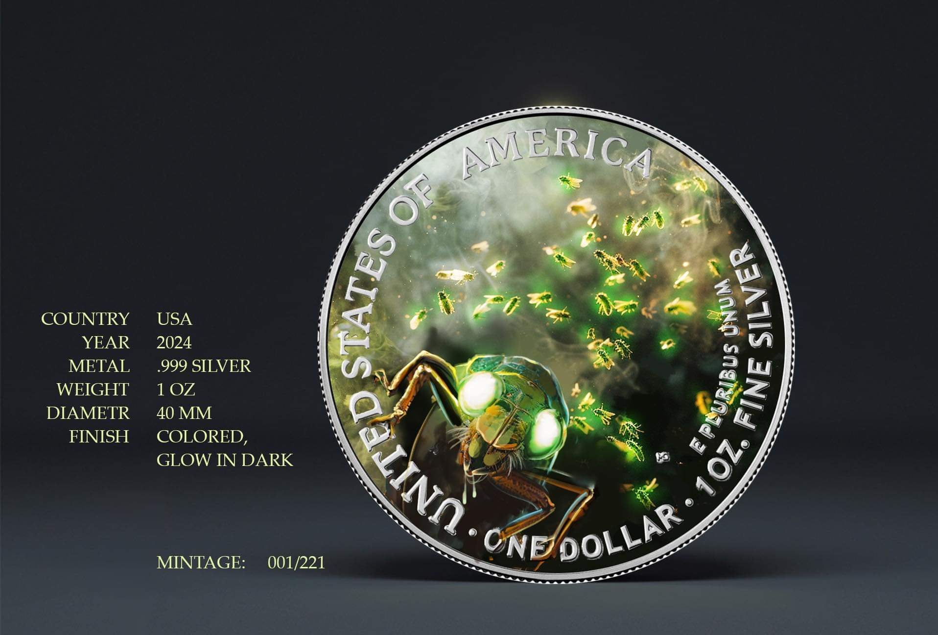 2024 colorized Silver Eagle .999 1oz coin Cicada Invasion Double glow in the dark