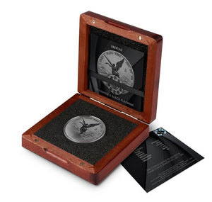 Discover the exclusive 2024 Mexico Libertad Black Platinum and Ruthenium 1oz .999 Silver Coin, limited to just 500 pieces. Each coin arrives in a beautifully crafted wooden box and includes a Certificate of Authenticity, ensuring its value and authenticity. With an anticipated arrival at the end of August, this rare collectible combines exquisite design with premium materials, making it a must-have for discerning collectors and investors alike. Secure your piece of history before it's gone.