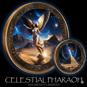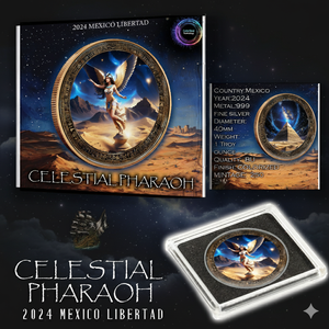 Discover the power and allure of the ancient Pharaoh with this breathtaking 2024 Mexico Libertad Celestial Pharaoh Colorized Coin. Featuring a mesmerizing design, this 1oz .999 silver coin is a must-have for any collector and a stunning addition to your collection! Don't miss out on this limited edition release - order yours now!