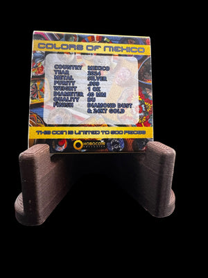 This 2024 Mexico Libertad coin features a new diamond dust design, showcasing the vibrant colors of the Mexican flag. It comes in a deluxe display case with a certificate of authenticity included. A must-have for any coin collector or enthusiast.