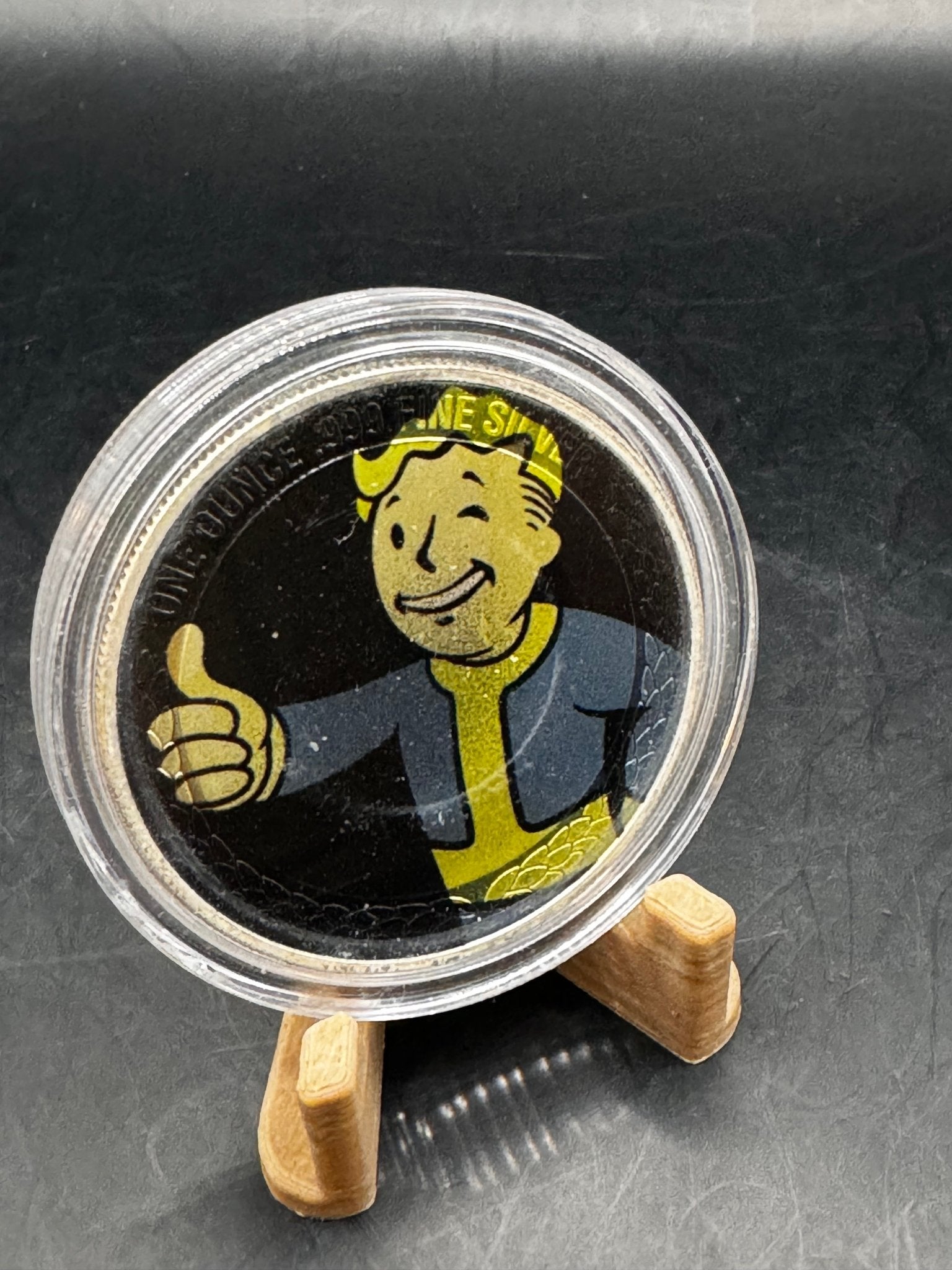 Satisfy your Fallout fandom and investment desires with the limited edition 2024 Nuka-Cola Fallout Caps 1oz color .999 Silver Round. Only 250 were minted, making this 1oz .999 fine silver round a rare and valuable addition to any collection. Don't miss out on this opportunity!