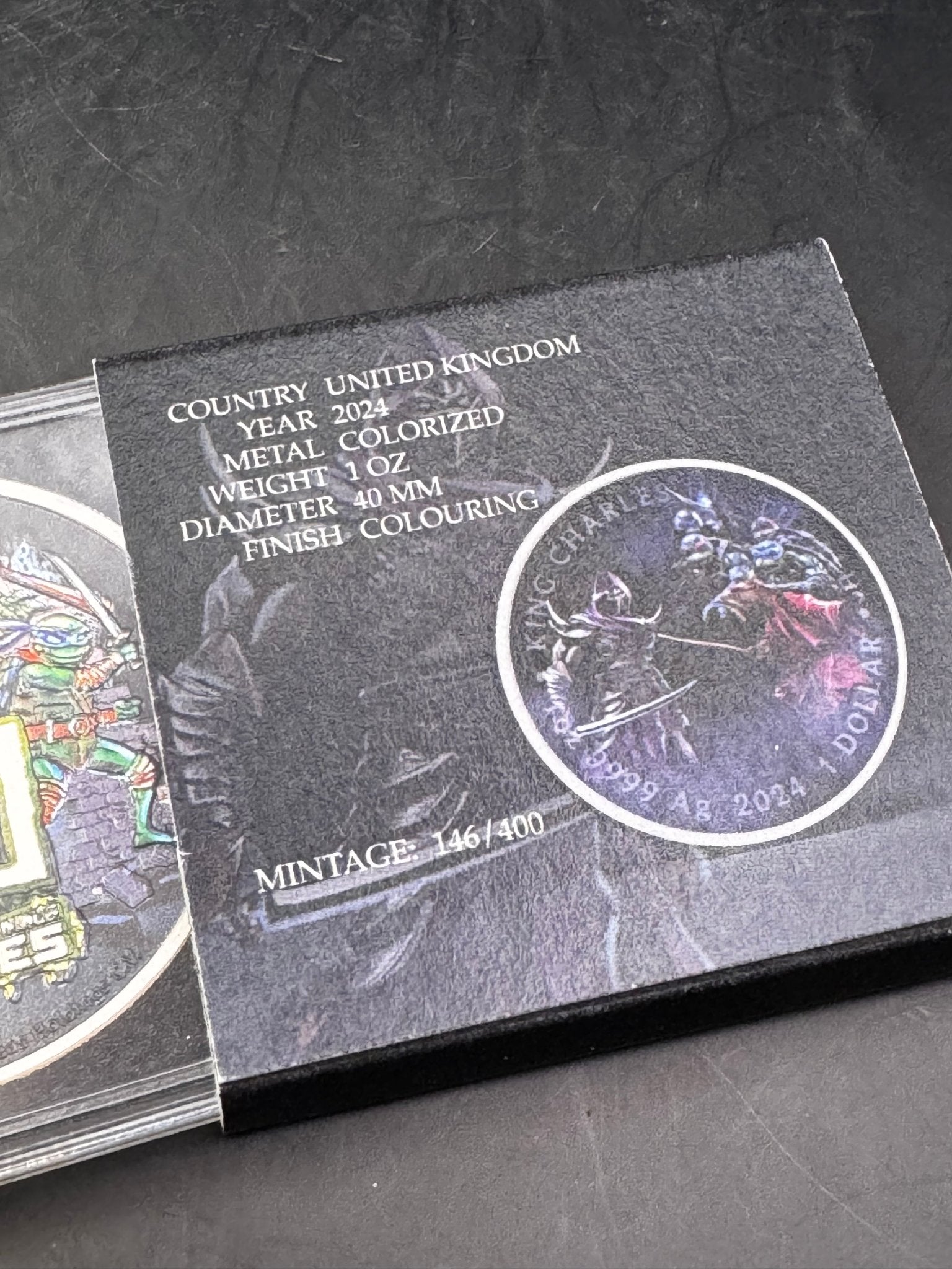 • Collectible Appeal: With its limited mintage and dynamic design, this coin is not only a valuable collector’s item but also a colorful tribute to the enduring legacy of the TMNT series.