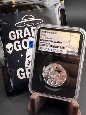 Discover the exclusive 2024 Samoa $1 Alien FR NGC Gem Uncirculated Proof Like coin, a rare treasure limited to just 200 pieces issued by NGC for the first time ever.