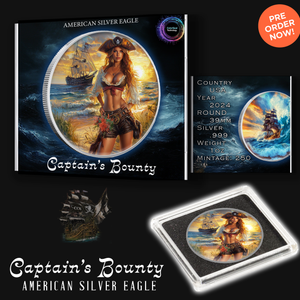 Inspire your adventurous spirit with the 2024 Silver Eagle Colorized Captain's Bounty Coin. This stunning 1oz. coin in .999 silver features a limited edition of 250 pieces. Add a touch of elegance and uniqueness to your coin collection today!