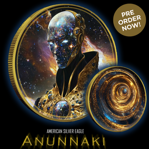 The 2024 Silver Eagle "The Anunnaki" 1oz .999 Silver Coin Colorized features the legend of the Anunnaki with a twist in sci-fi, providing a unique and educational addition to any collection. Made of .999 pure silver, this coin is a valuable investment.