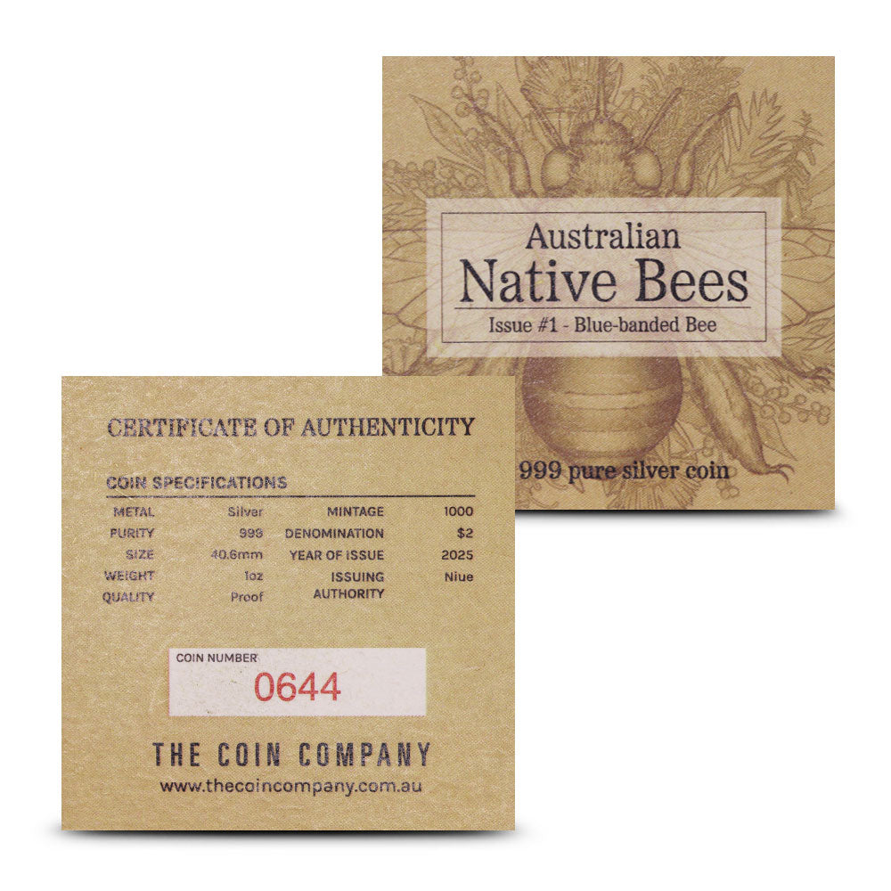 2025 1 oz Proof Hologram Niue Silver Blue-Banded Bee Coin (Box + CoA)