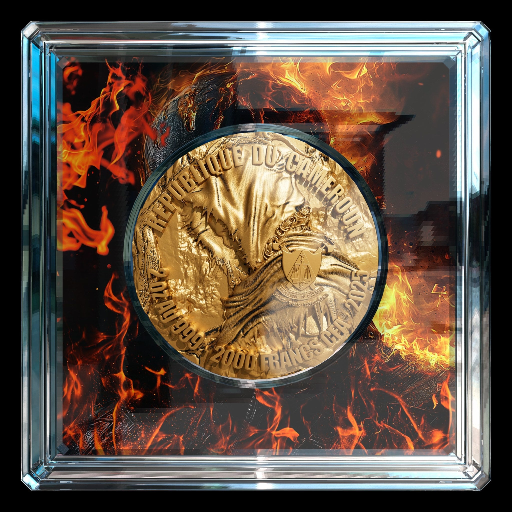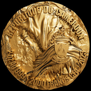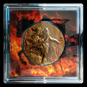 Experience the striking allure of the 2025 Cameroon Four Horsemen Death coin, the first in the exclusive Four Horsemen Series. Crafted from 2 oz of .999 fine silver and enhanced with gold gilding and vivid UV coloring, this high-relief coin commands attention. With a limited mintage of just 99 pieces, each 50mm coin carries a face value of 2000 Francs CFA and arrives in a themed acrylic case and box, complete with a certificate of authenticity. A rare collectible that combines artistry and scarcity for discerning investors and enthusiasts alike.