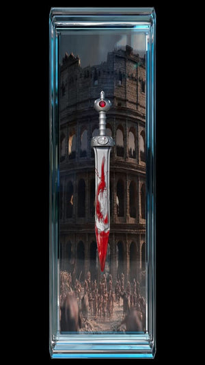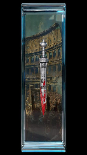 Experience the craftsmanship of the 2nd edition in the Legendary Swords Series. This limited edition, 2 oz .999 silver coin is antiqued and color and features a hand-inlaid red crystal in the hilt. With a minimum advertised price of $225 and a mintage of only 99, this coin is a rare and valuable addition to any collection. Don't miss the opportunity to own this stunning coin, delivered in an acrylic case, box, and with a certificate of authenticity. Available now, orders needed by Tuesday 7/22/25 for an ETA of the end of September.