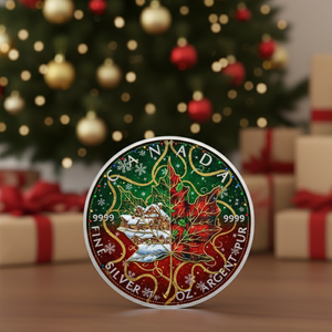 Celebrate the magic of a Canadian Christmas with this stunning 2025 Maple Christmas Spirit silver coin.
