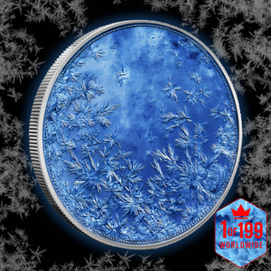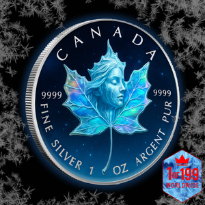 Limited to just 199 pieces, this exclusive coin features a stunning depiction of Frost Lady Mother Nature nestled within the iconic maple leaf.
