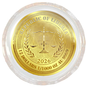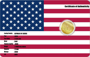 2025 Liberia USA 1/1000 oz .9999 Gold Coin in Card