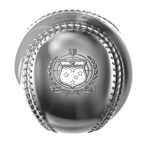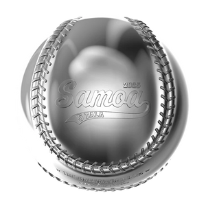 The design mirrors the unmistakable look of a real baseball, complete with its iconic two-panel construction and detailed stitching.. Featured on the ball is a stylized baseball-themed logo of Samoa, along with the official coat of arms and a fictional team name we created: The Bullion Bombers. A nod to both precious metal collectors and baseball fans—join the team now!
