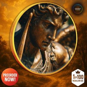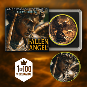 This exclusive 2025 Silver Eagle features a mesmerizing portrait of a Fallen Angel enhanced with premium gold gilding.