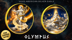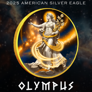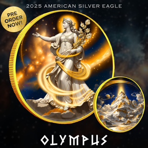 Experience the exclusive 2025 Silver Eagle Olympus Edition, a 1oz .999 fine silver coin featuring a stunning colorized design of Lady Liberty as Olympus.
