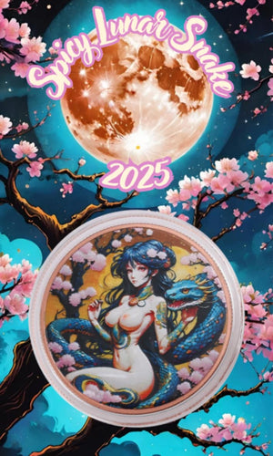 Embrace the fiery energy of the Lunar Snake with this colorized copper round. Featuring a spicy design, this 33g round comes beautifully displayed in a card. Add a unique touch to your collection in honor of the 2025 Year of the Spicy Lunar Snake.