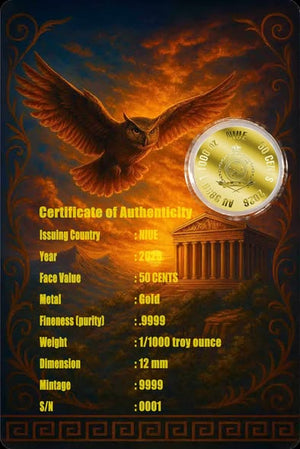 2026 Niue Athena 1/1000 oz .9999 Gold Coin in Card