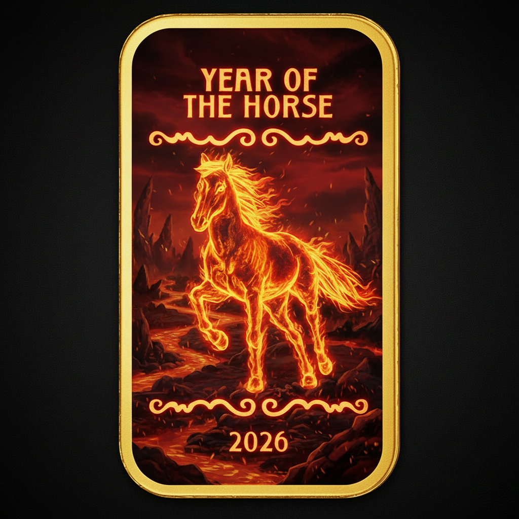 Featuring stunning gold gilding, this limited edition bar captures the fiery energy and grace of the Horse zodiac. With only 150 pieces available, it offers a rare opportunity to own a beautifully crafted collector's piece that enhances any precious metals portfolio.