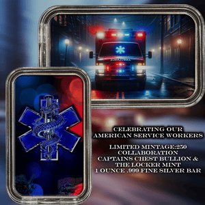 This limited edition silver bar has a mintage of only 250 pieces, making it a rare and highly sought-after collectible. It is presented in a collaboration captains chest bullion design, reflecting the significance and value of the American Service Worker Limited Silver Bar.